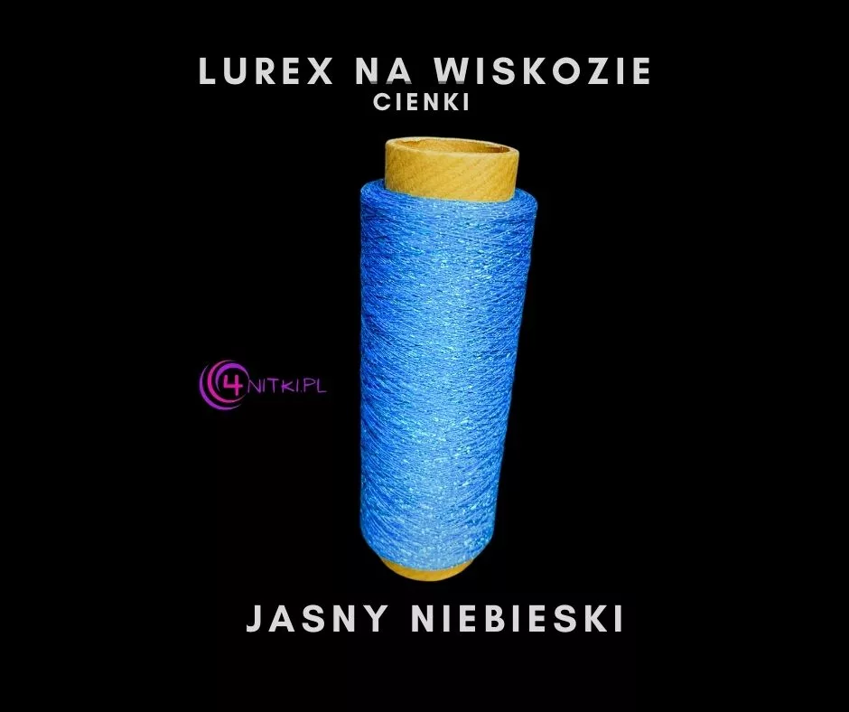 Napisz pierwszą opinię o „CIENKI Lurex na wiskozie JASNY NIEBIESKI na szpuli 1000m”