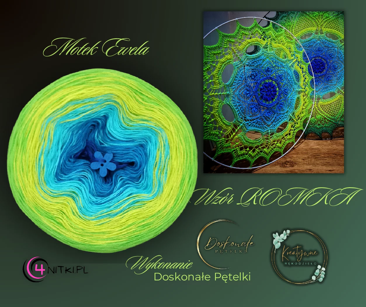 KOLEKCJA MANDALOWA to efekt współpracy Świat makramy by Magdalena, Kreatywne Rękodzieło i 4nitki.pl. Sposób nawijania motka został dostosowany do dziergania zarówno okrągłej mandali jak i chusty trójkątnej. Przejścia kolorów od środka motka kolejno, są co raz dłuższe, dzięki czemu rozkład barw w robótce jest równomierny*