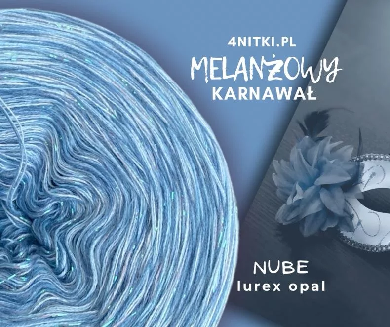 UWAGA! Na zdjęciu głównym wersja z dodatkiem LUREX-u OPAL, które NIE są uwzględnione w cenie standardowej produktu. Dodaj lurex poniżej ustawiając wariant produktu. Wówczas lurex będzie nawinięte na motek jako dodatkowa nić.