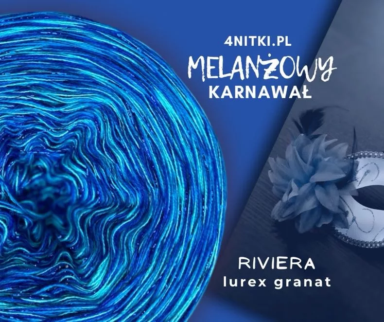 UWAGA! Na zdjęciu głównym wersja z dodatkiem LUREX-u GRANATOWEGO, które NIE są uwzględnione w cenie standardowej produktu. Dodaj lurex poniżej ustawiając wariant produktu. Wówczas lurex będzie nawinięte na motek jako dodatkowa nić.