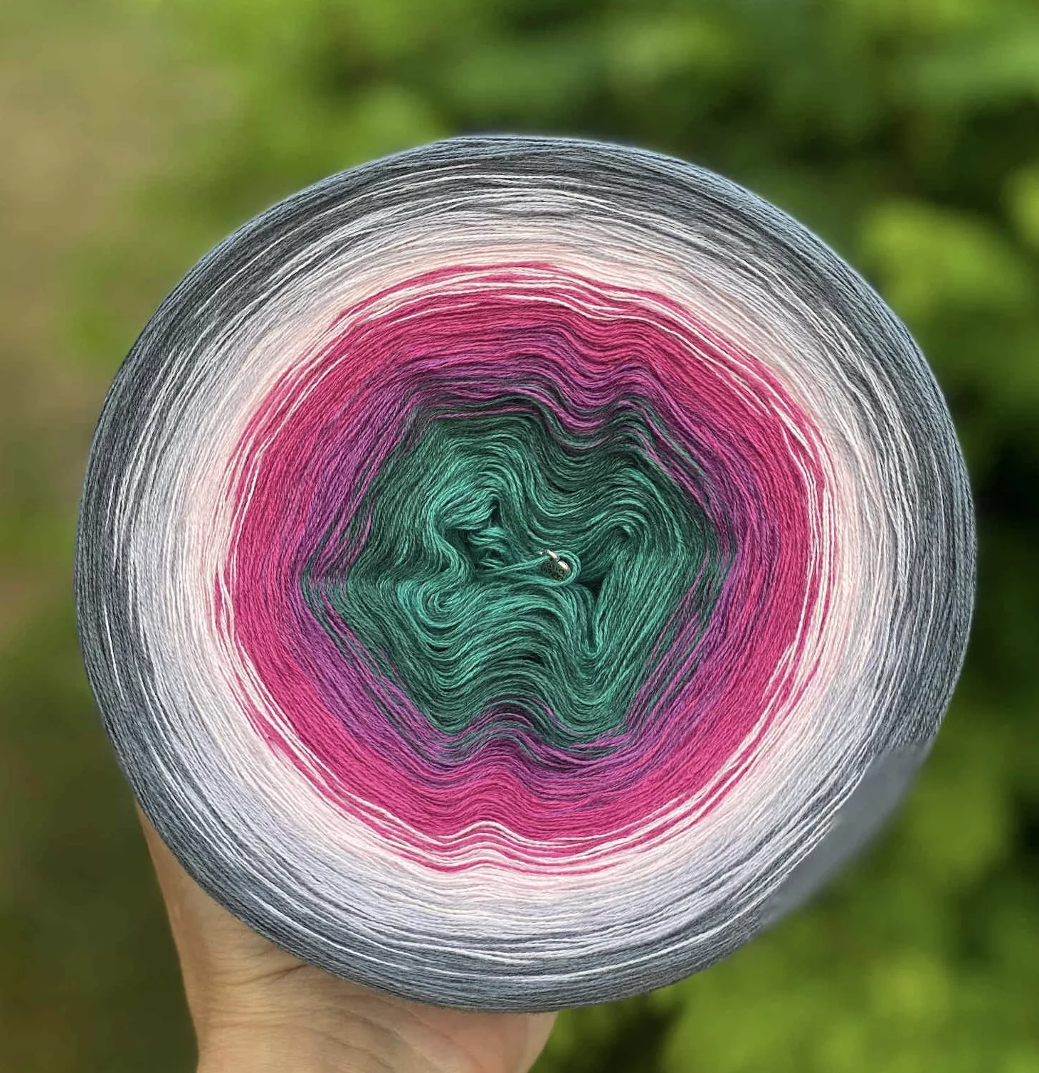 Motek ombre czyli kolory zmieniają się w nim po kolei nitka po nitce tworząc nie skręcony motek z łagodnymi przejściami barw. Nitki łączą się za pomocą małych supełków z długimi „ogonkami”, dzięki czemu łatwo je ukryć w robótce.