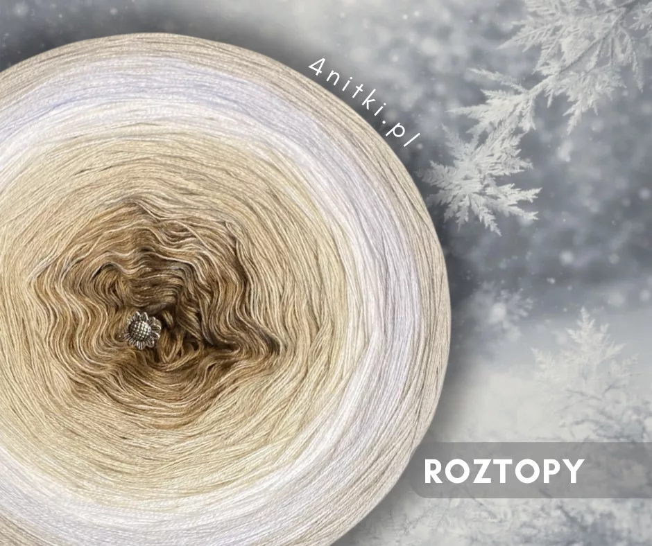 KOLORY od zewnątrz motka: BLADY SZARY, PLATYNA, BIAŁY, KREMOWY, ALABASTER, JASNY BRĄZ