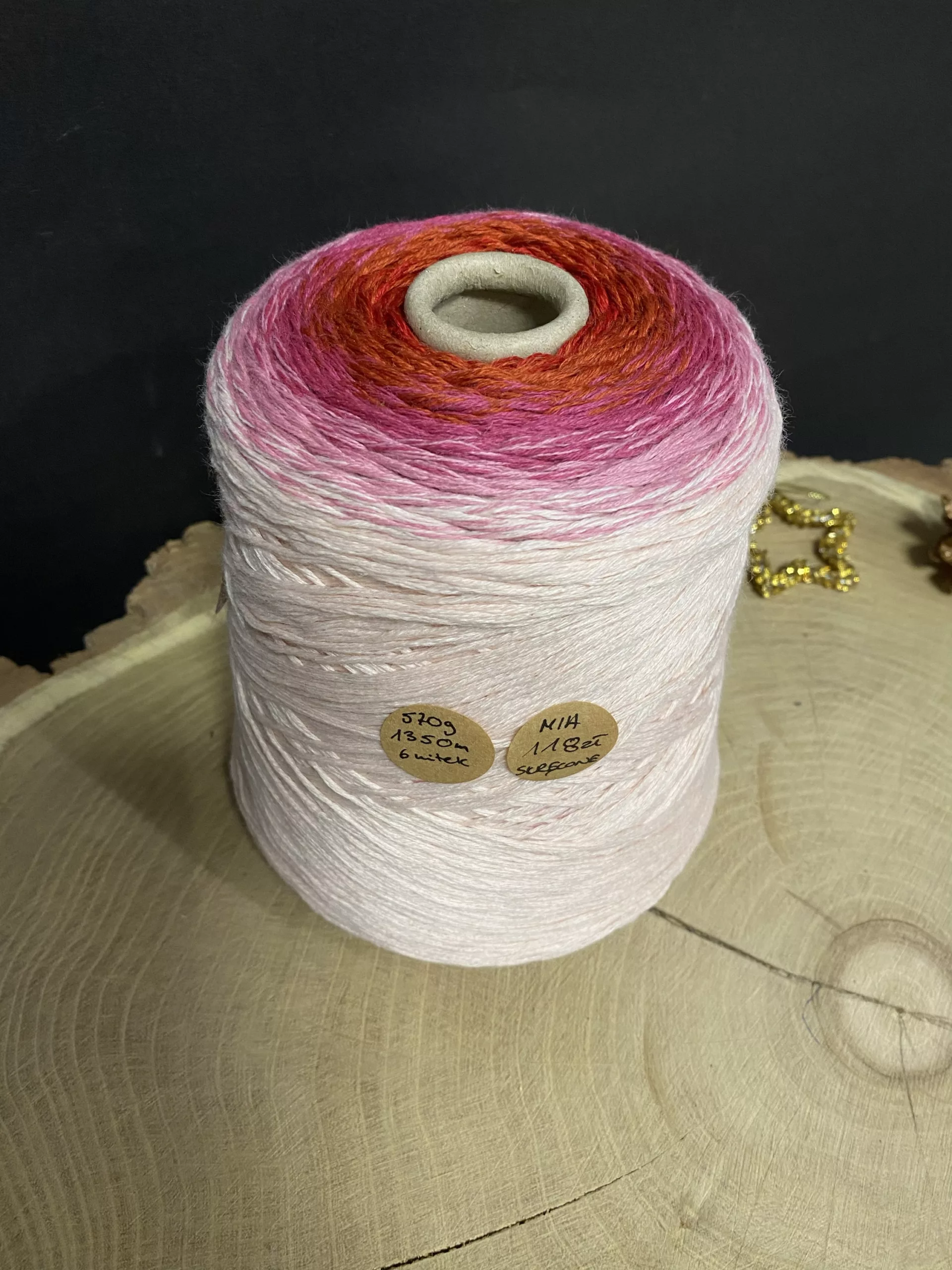 Outlet skręcony 6 nitek m/a 570g 1350m. Produkt outletowy może zawierać drobne błędy jak wystające nitki lub miejscowe błędne skręcenie czy dodatkowe supełki.