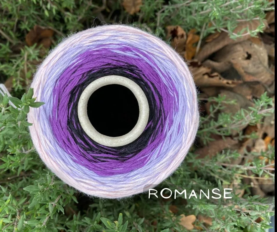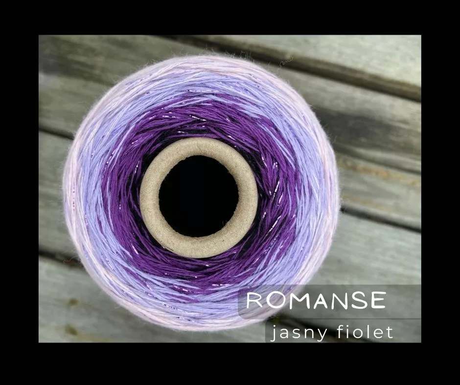 KOLORY od zewnątrz motka: HERBACIANY RÓŻ, FIOŁEK, PURPURA, CZARNY